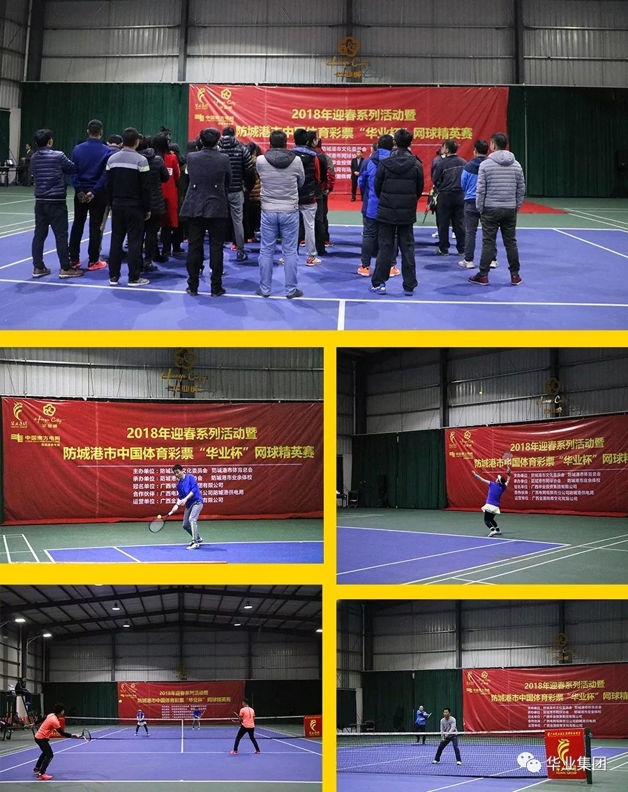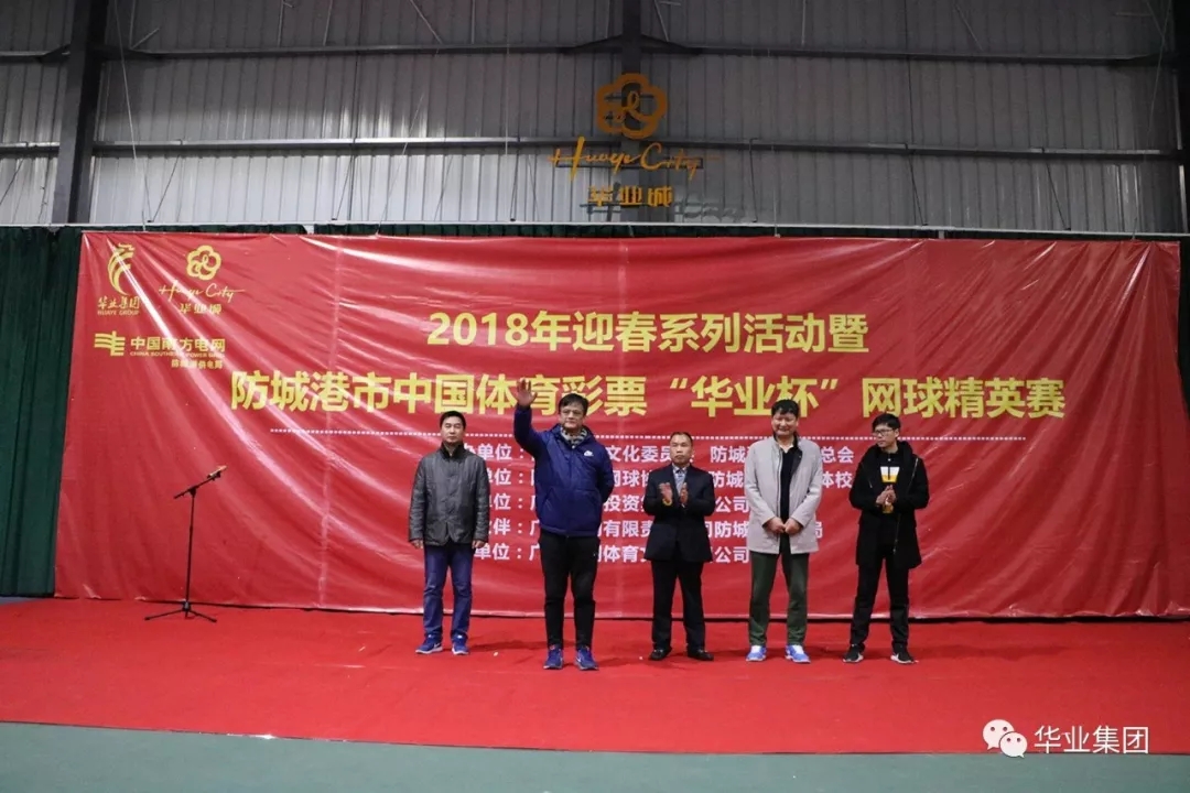 2018年2月2日,由華業(yè)集團冠名的“防城港市中國體育彩票華業(yè)杯網(wǎng)球精英賽”在華業(yè)城全民健身活動中心拉開序幕,防城港市市委常委、常務(wù)副市長唐軼昂,副市長、公安局局長王琛,市住建委主任張常路,市文化委員會副主任陳文智,廣西華業(yè)投資集團總裁龍其偉,市網(wǎng)球協(xié)會會長莫自鋒出席開幕式。