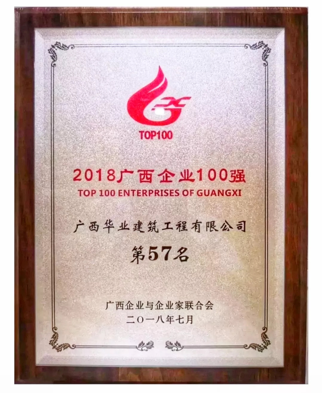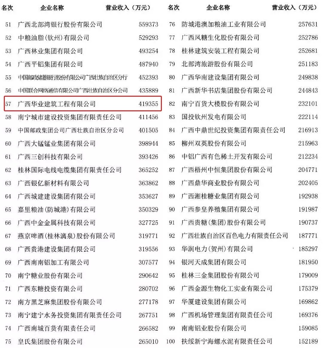 2018廣西百強(qiáng)企業(yè)隆重揭曉! 廣西華業(yè)建筑工程有限公司位列廣西百強(qiáng)企業(yè)第57名,廣西民營企業(yè)50強(qiáng)第15名!