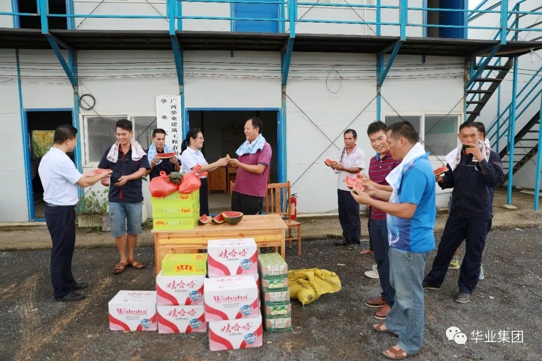 自進(jìn)入三伏天以來,廣西區(qū)受副熱帶低壓高溫氣候影響,連續(xù)出現(xiàn)酷暑悶熱、多暴雨、陣雨等強(qiáng)對(duì)流天氣,給廣大室外作業(yè)、工程施工人員帶來了很大的困難和考驗(yàn)。華業(yè)集團(tuán)龍其生董事長、龍其偉總裁對(duì)此十分重視和關(guān)切,指示集團(tuán)工會(huì)積極組織開展“關(guān)愛員工送清涼”活動(dòng),采取有效措施幫助室外作業(yè)的廣大員工應(yīng)對(duì)惡劣天氣,改善工作環(huán)境,切實(shí)關(guān)心愛護(hù)員工身心健康。