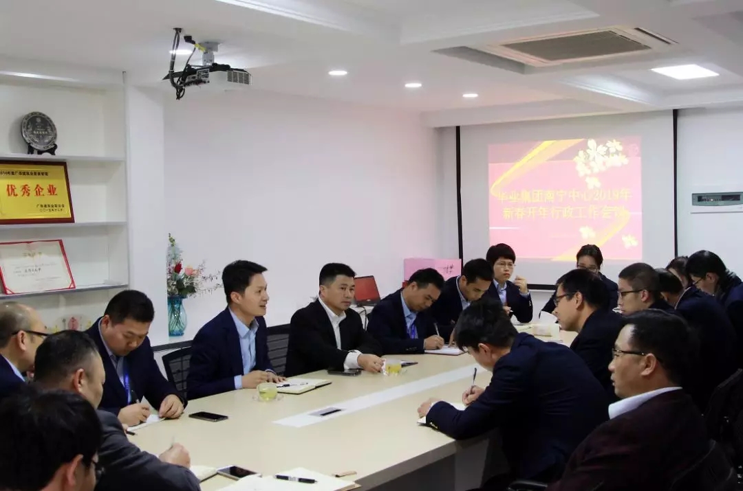 2019年2月11日,新年開工第一天,華業(yè)集團分別于防城港運營中心、南寧運營中心隆重召開了2019年新春開年行政工作會議,龍其生董事長、龐樹玉副總裁出席了南寧運營中心會議,廖人興副總裁、熊昭斐副總裁出席了防城港運營中心會議。兩地全體行政工作人員分別參加了會議。