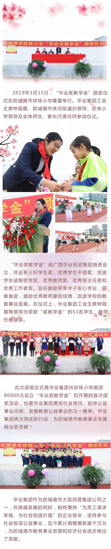 “華業(yè)獎(jiǎng)教學(xué)金”頒獎(jiǎng)儀式在防城港市珍珠小學(xué)隆重舉行