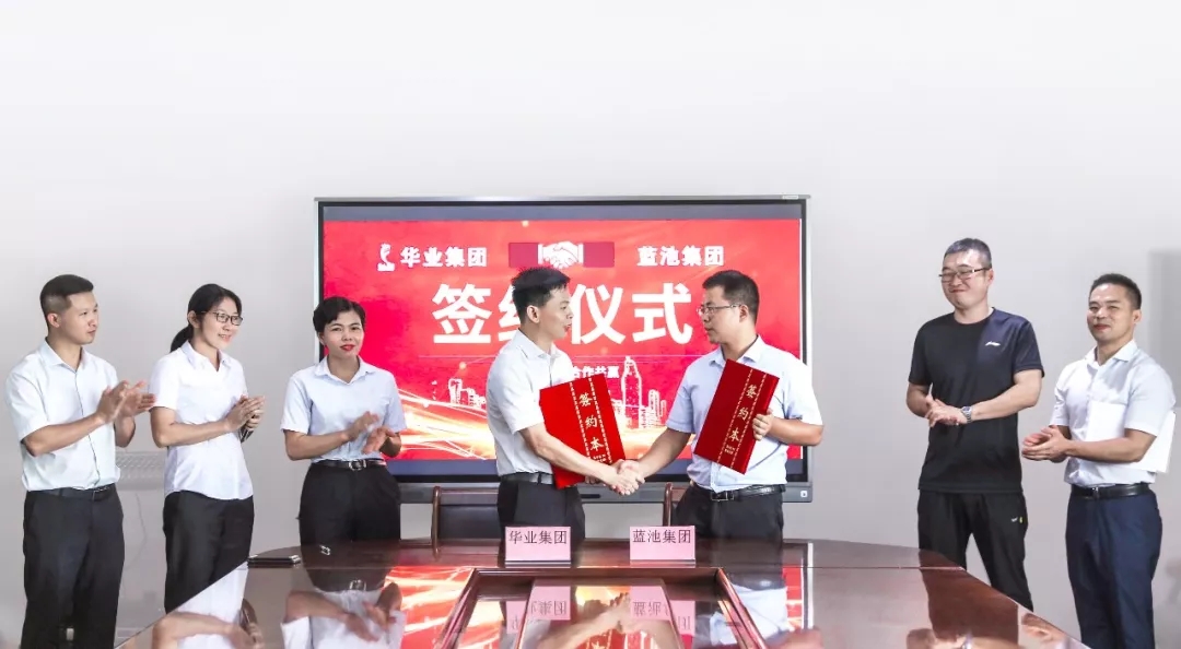 華業(yè)集團副總裁熊昭斐,藍池集團董事長助理王艷剛分別代表雙方簽署了合作協(xié)議,華業(yè)集團財務總監(jiān)李情、工會主席鐘麗霞、藍池集團項目部總監(jiān)左江濤等領導出席見證了簽約儀式。