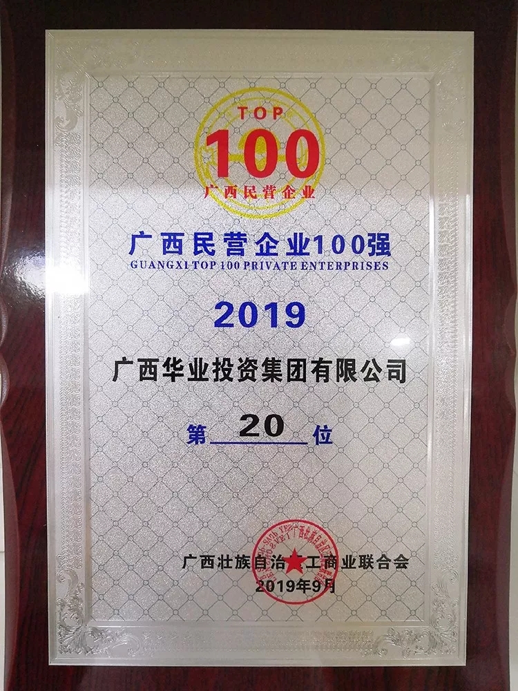 喜訊丨華業(yè)集團(tuán)榮獲“2019廣西民營企業(yè)100強(qiáng)”,位列第20名!