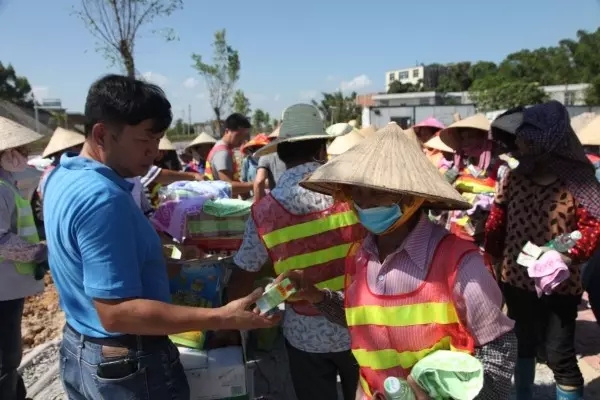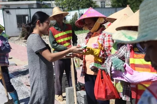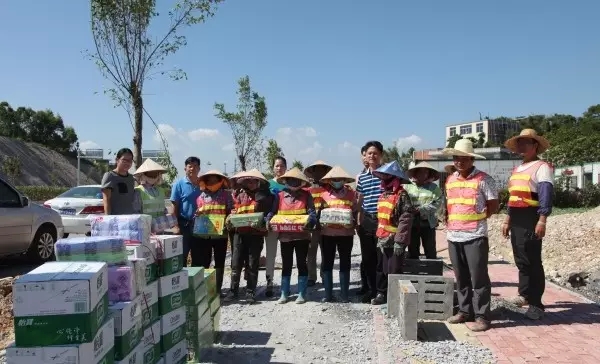防城港的夏天持續(xù)高溫,熱氣襲人,但為了保證施工進度,公司項目部員工不畏困難,戰(zhàn)高溫、斗酷暑,依舊堅守崗位。頂著高溫奮斗在一線崗位的員工牽動著公司領導的心,7月25日下午,在防城區(qū)總工會的支持下,受集團公司龍其偉總裁和龍其生董事長的委托,集團副總裁唐光源、工會主席鐘麗霞、副總經(jīng)理龐樹玉一行前往防城港市東灣綠化工程施工現(xiàn)場看望奮戰(zhàn)在高溫一線的項目部員工,為他們送去了夏季防暑物品,為員工們帶來了絲絲“清涼”。
