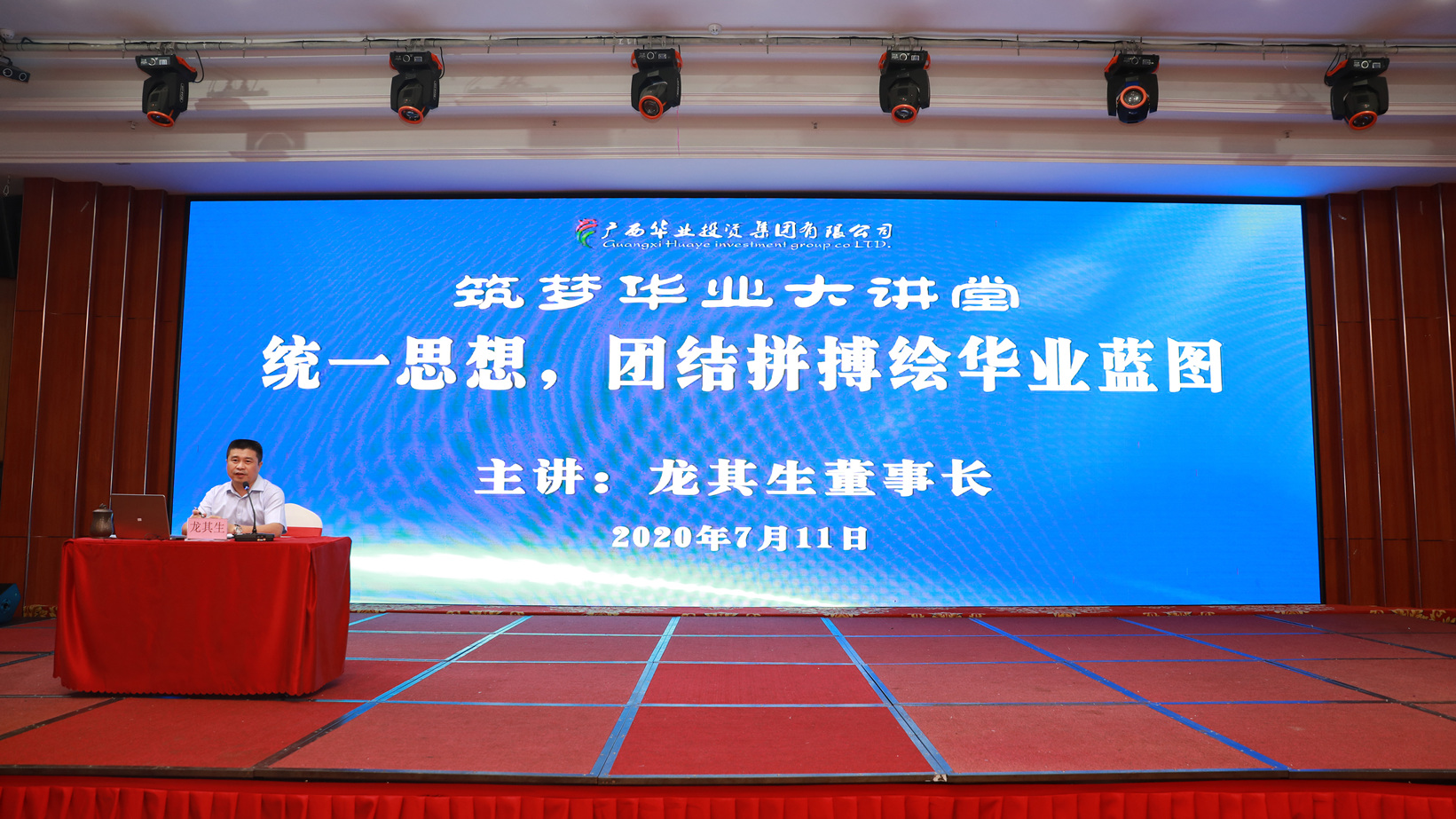 2020年7月11日,華業(yè)集團“筑夢華業(yè)大講堂”首期講堂拉開序幕,集團龍其生董事長為集團全體中高層領(lǐng)導(dǎo)講授了主題為“統(tǒng)一思想,團結(jié)拼搏繪華業(yè)藍圖”生動而精彩的一課。“筑夢華業(yè)大講堂”將打造為集團今后常態(tài)化開展的學(xué)習(xí)交流平臺。