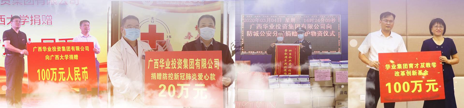 華業(yè)集團以履行社會責任為己任的理念贏得了社會各界的肯定,先后獲得“自治區(qū)統(tǒng)戰(zhàn)部2020年‘抗疫先進單位’”“2019年廣西‘萬企幫萬村’精準扶貧行動‘先進民營企業(yè)’”“廣西統(tǒng)一戰(zhàn)線脫貧攻堅先進單位”“紅十字天使計劃博愛救心八桂行愛心單位”“支持共青團工作先進單位”“情系家鄉(xiāng)教育”“模范職工之家”“防城港市愛心企業(yè)”“防城港市社會公益慈善事業(yè)突出貢獻單位”等榮譽稱號。